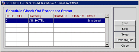 Note: When starting a session in OPERA and the Schedule Checkout processor is not started and running, then a message window is displayed informing the user about the current status of the processor.