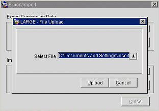 Export/Import screen in Thick Client environment will not have the Upload File button