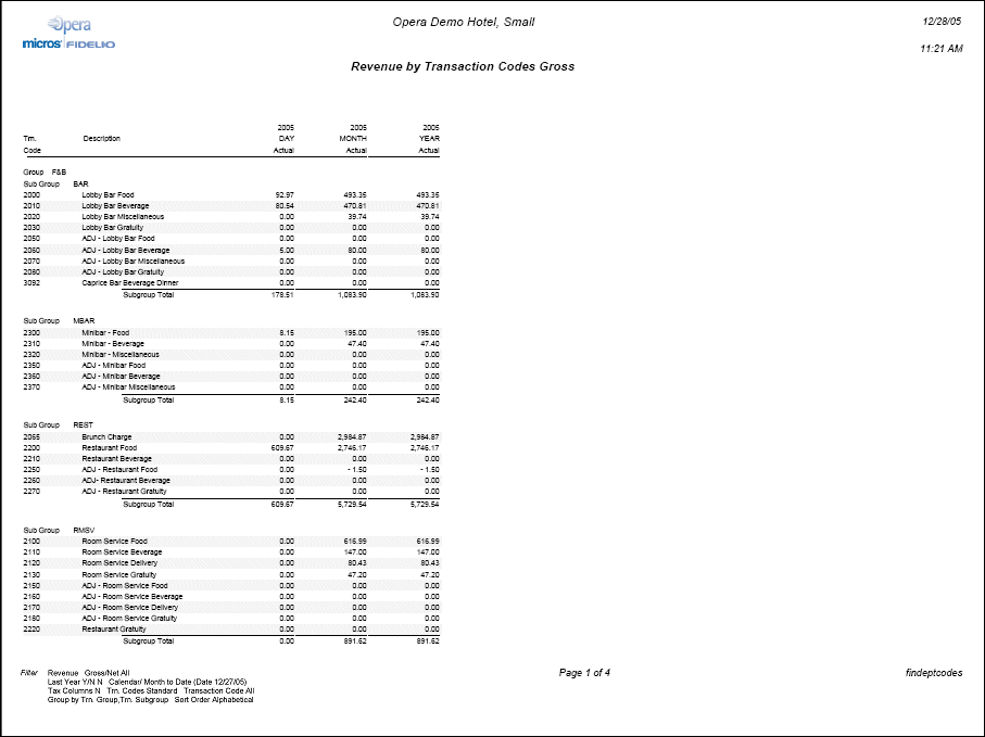 All. Shows all transaction codes that have been posted for the date specified. You have the additional option of showing the transaction code amounts for Revenues as Net or Gross.