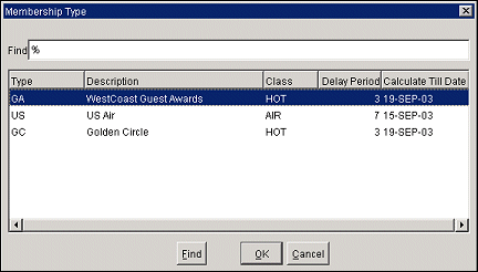 Membership Type. Select the down arrow to display the Membership Type list of values. Choose the membership type to calculate or expire points, or issue awards, and select the OK button.