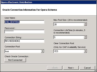 Refer to the following image and the table below for information on configuring the Oracle connection information for the OPERA schema: