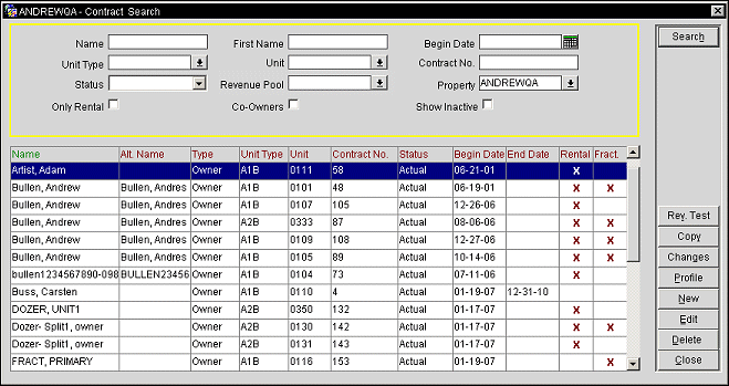Copy. Select to copy the highlighted contract, including its details, to another unit. See Copying an Owner Contract for details.