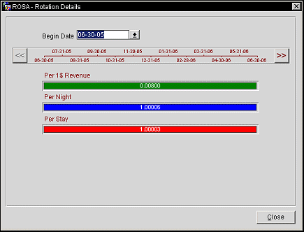 Details. Select this button to display the number of points for each points factor type (Per 1$ Revenue, Per Stay, and Per Night) in effect on any given date, starting on the date shown in the Begin Date field (See Rotation Details below for details).