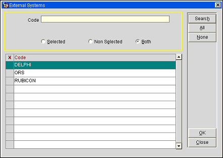 Select the appropriate OXI Interface (or multiple interfaces if you so choose), mark each with an X in the X column, then select the OK button. Once the record has been synchronized with the OXI Interface, the following message will display: 'Message sent to ORS interface(s).'