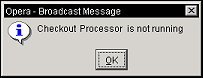 Note: When starting a session in OPERA and the Schedule Checkout processor is not started and running, then a message window is displayed informing the user about the current status of the processor.