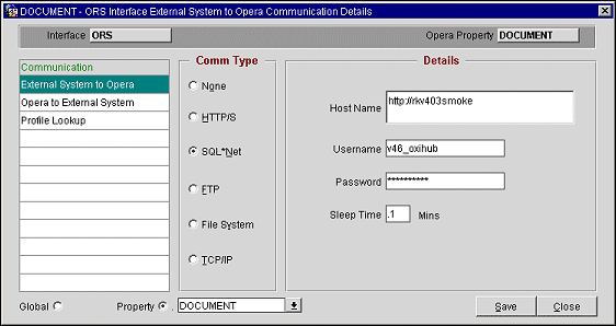 Comm Type SQL*Net. can be used if the instances for OPERA, OXI, and the external system database are linked via DBLINK or Oracle SQL*Net connection. The external system will send and receive information through the OXI API. A queuing mechanism including enqueue and dequeue APIs is required. On OPERA/OXI side this will be Oracle AQ. Any queuing on external system side is up to the external system vendor.