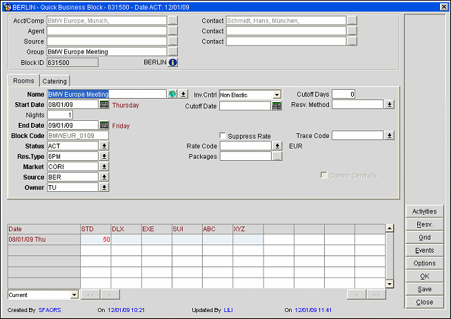 Resv. (Available when business block status is open-for-pickup.) Create a posting master and go to the Room List screen where you may make reservations for this business block.