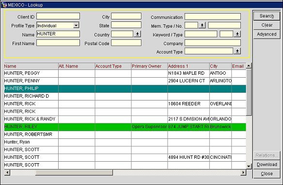 Note: Only 1 relationship type and 1 master profile can be downloaded at a time. For example, if the MASTER profile has relations to COMPANY and SIBLING, you can only download MASTER profile + COMPANY or MASTER profile + SIBLING; you cannot download MASTER profile + COMPANY + SIBLING all at the same time. Instead, a second lookup will need to be performed for both the COMPANY and SIBLING relationships to be downloaded to PMS.