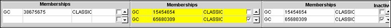 Setup: A membership is inactivated in ORS. In the external system, an identical profile is created with the same membership type and a new membership number. The membership in ORS is suspended. In the Property Profile Panel the new membership is populated and the ORS Profile Panel has the suspended profile populated. The Third Panel has the ORS Profile Panel membership populated.