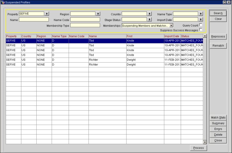 Process. This takes you to the Invalid Profile or the Suspended Profile Matches screen based upon the selected entry in the Summary screen.