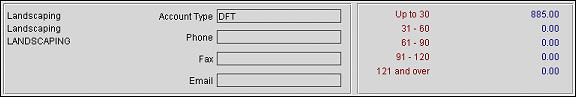 The left side of the Account Details area displays basic account information about the account, including the account type and phone, fax, and email information. The right side displays a breakdown of the account balance by each of the aging periods set up for the property.