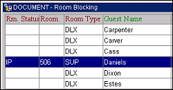 Type the new room number directly in the Room field of the grid. For example, if you wanted to assign room 506 instead of 505, type 506 directly in the Room field.