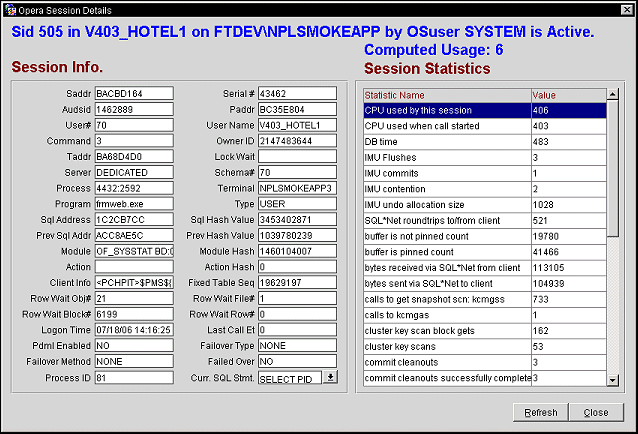 Displays specific statistics pertaining to a session. Access this screen by Utilities>Tools>Session Statistics>Details button.